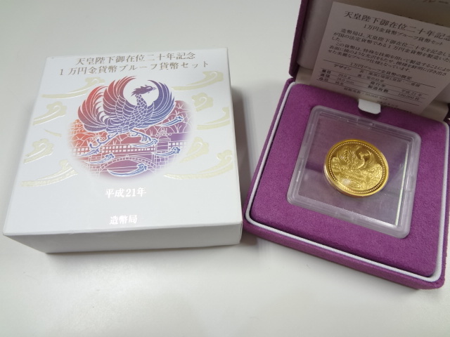こちら天皇陛下御在位20年を記念に発行された1万円金貨です☆