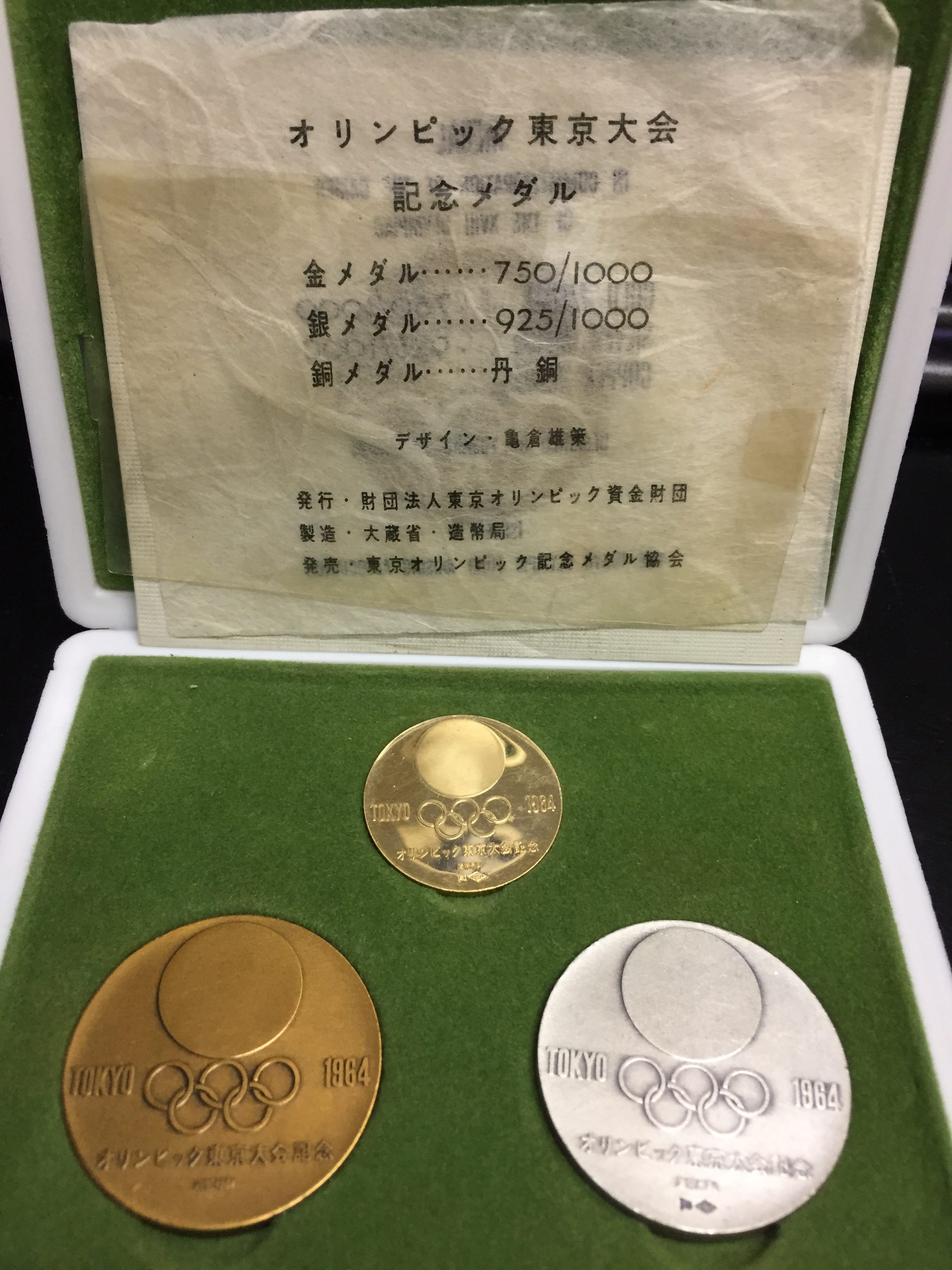 1964年 東京オリンピック 金・銀・銅 メダル3種セット