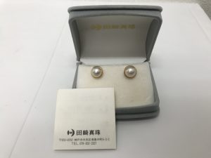 本日、田崎真珠のピアスを高価買取しました。