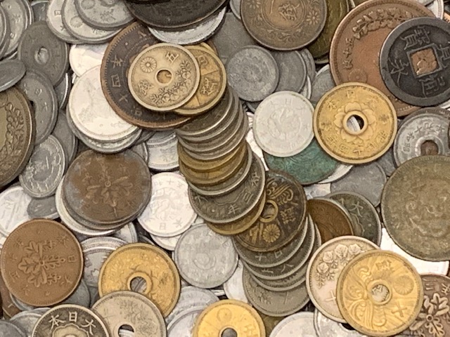 画像の日本古銭ほか、まとめてお買取りいたしました。