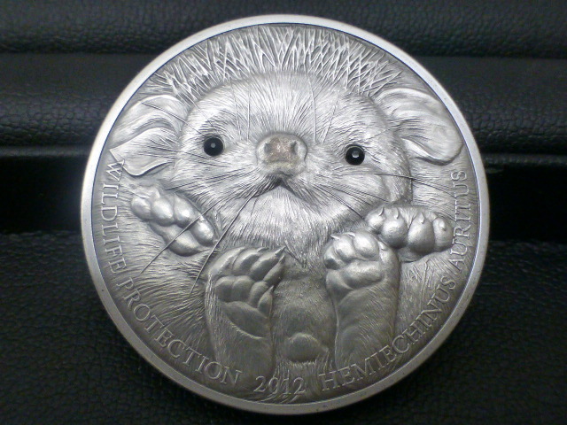 愛らしいハリネズミの瞳には石が埋め込まれていて、デザイン性の高い銀貨です😍