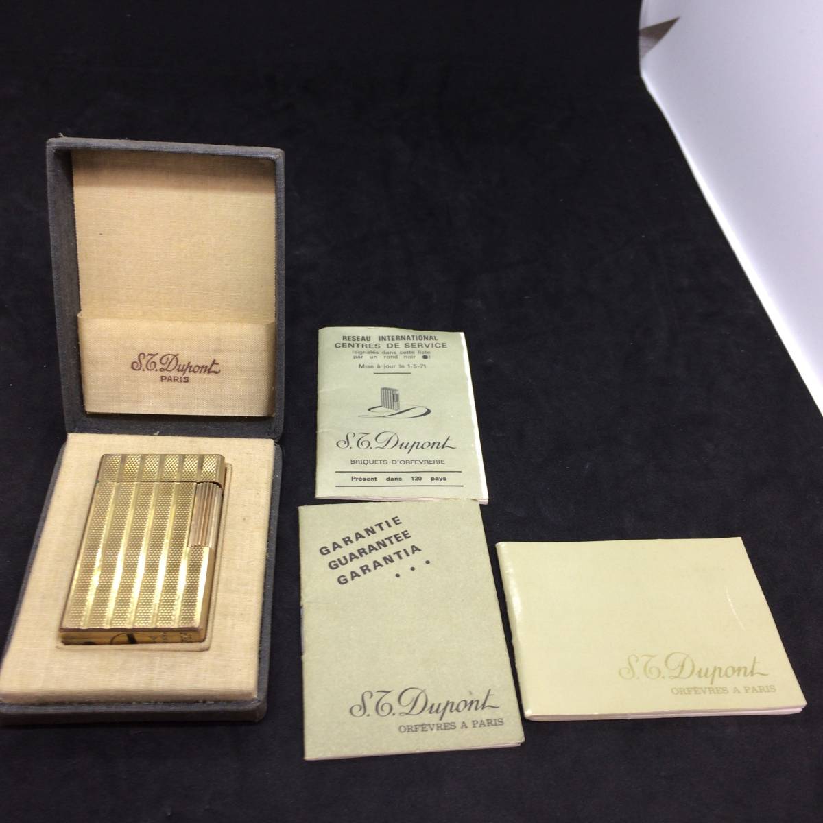 今回は ST Dupont デュポン ライター ゴールド 箱 説明書付 です。