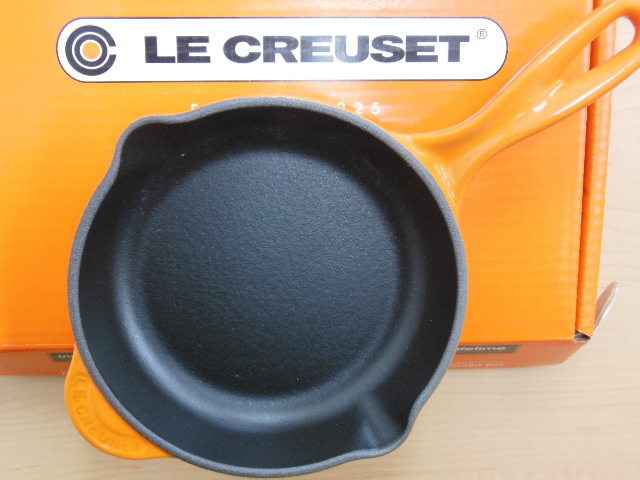 本日は住道にお住まいのお客様より未使用の食器のル・クルーゼの可愛いフライパンを買取ました。