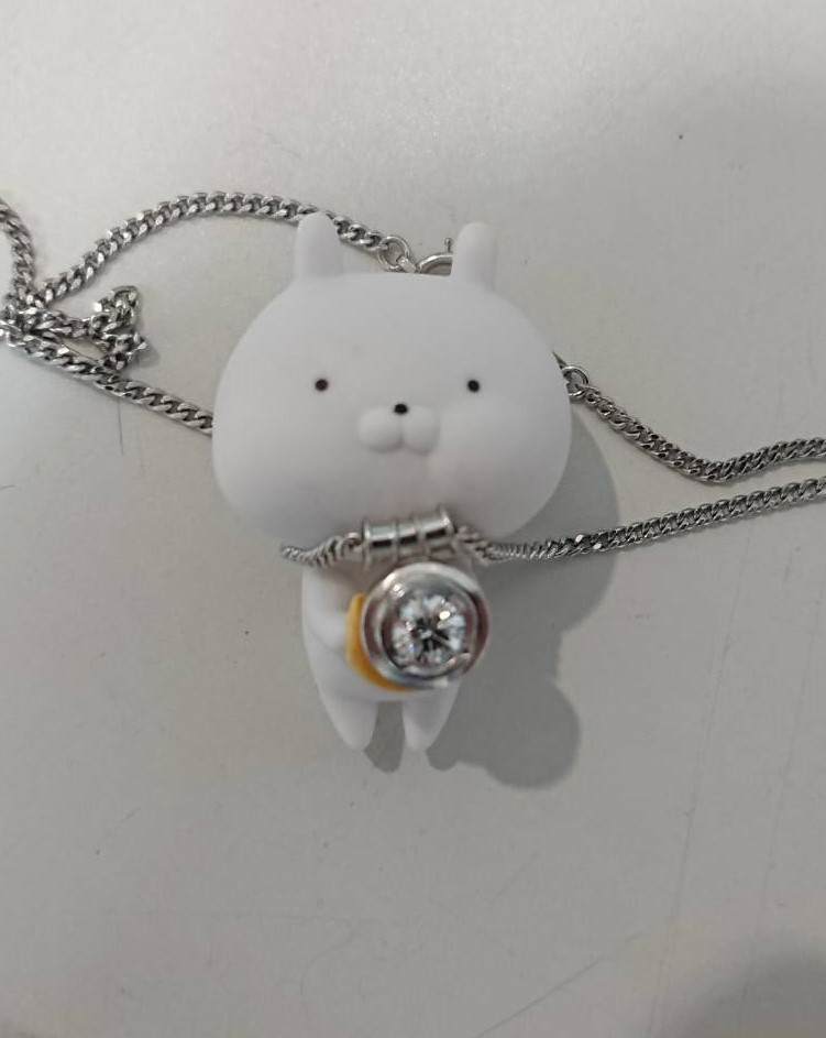 ダイヤのついたペンダントトップは、左右にスライドする計上なのですが、