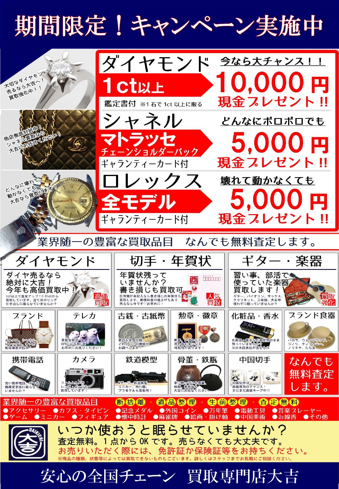 大吉にて無料査定します。
