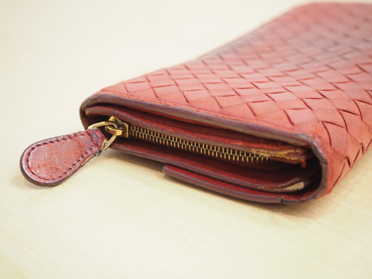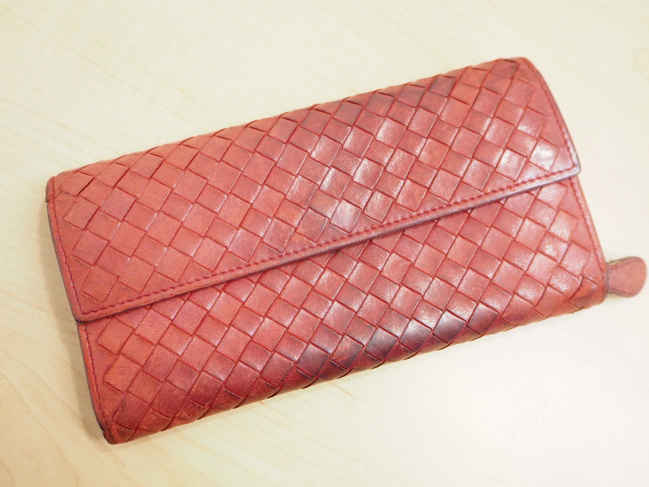 大吉高槻店:「BOTTEGA VENETA/ボッテガヴェネタ 長財布 イントレチャート レッド」買い取りました。 | 高槻店