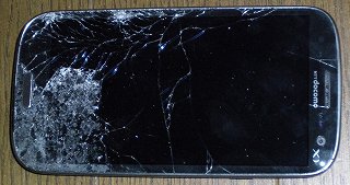 「画面の割れたスマホ」