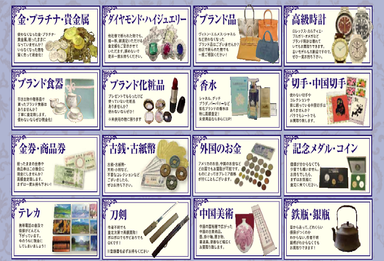 多種多様のお買取り品目がございます