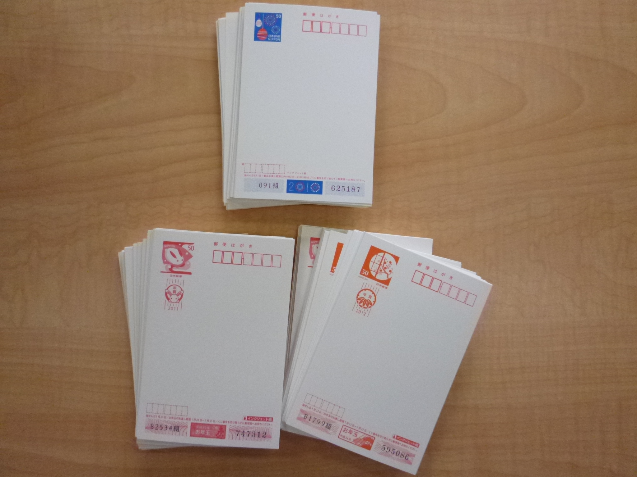 お持ち頂いたはがきは、50円の年賀はがきとかもめーるはがきです。