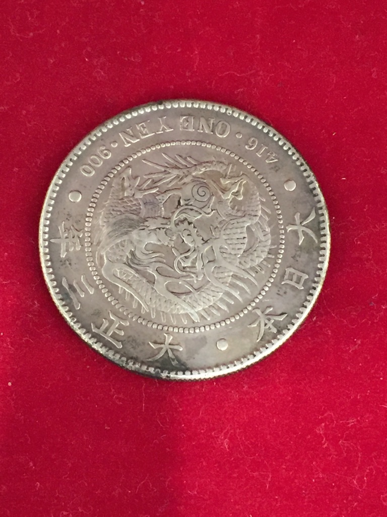 さて本日は、一圓銀貨です。こちらは大正三年の発行ですね。
