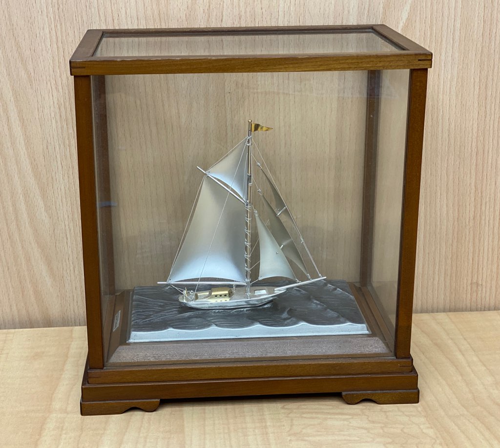 こちらは銀製のヨットの置物になります。
