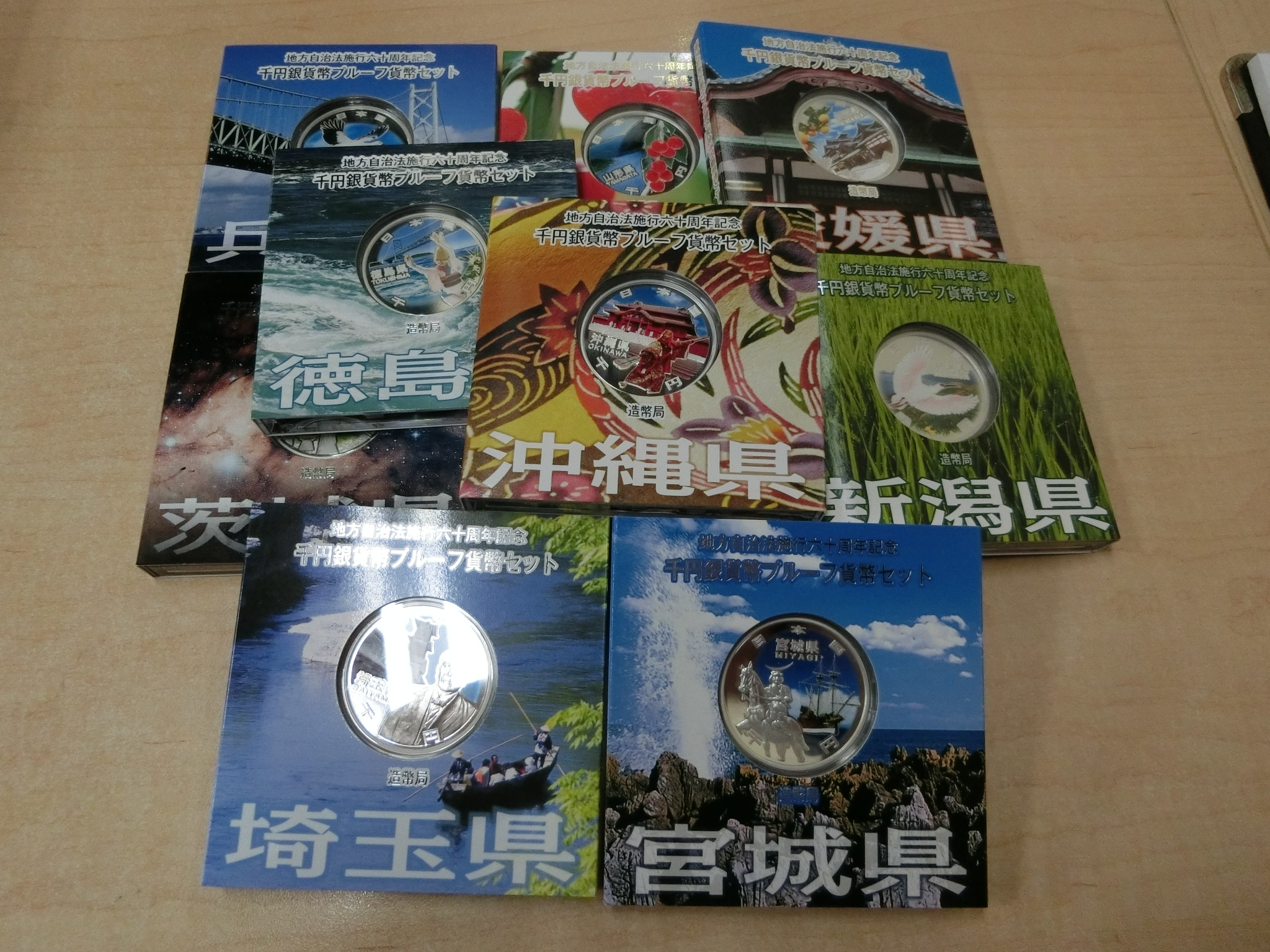 47都道府県別に順次発売された1000円のプルーフ銀貨。