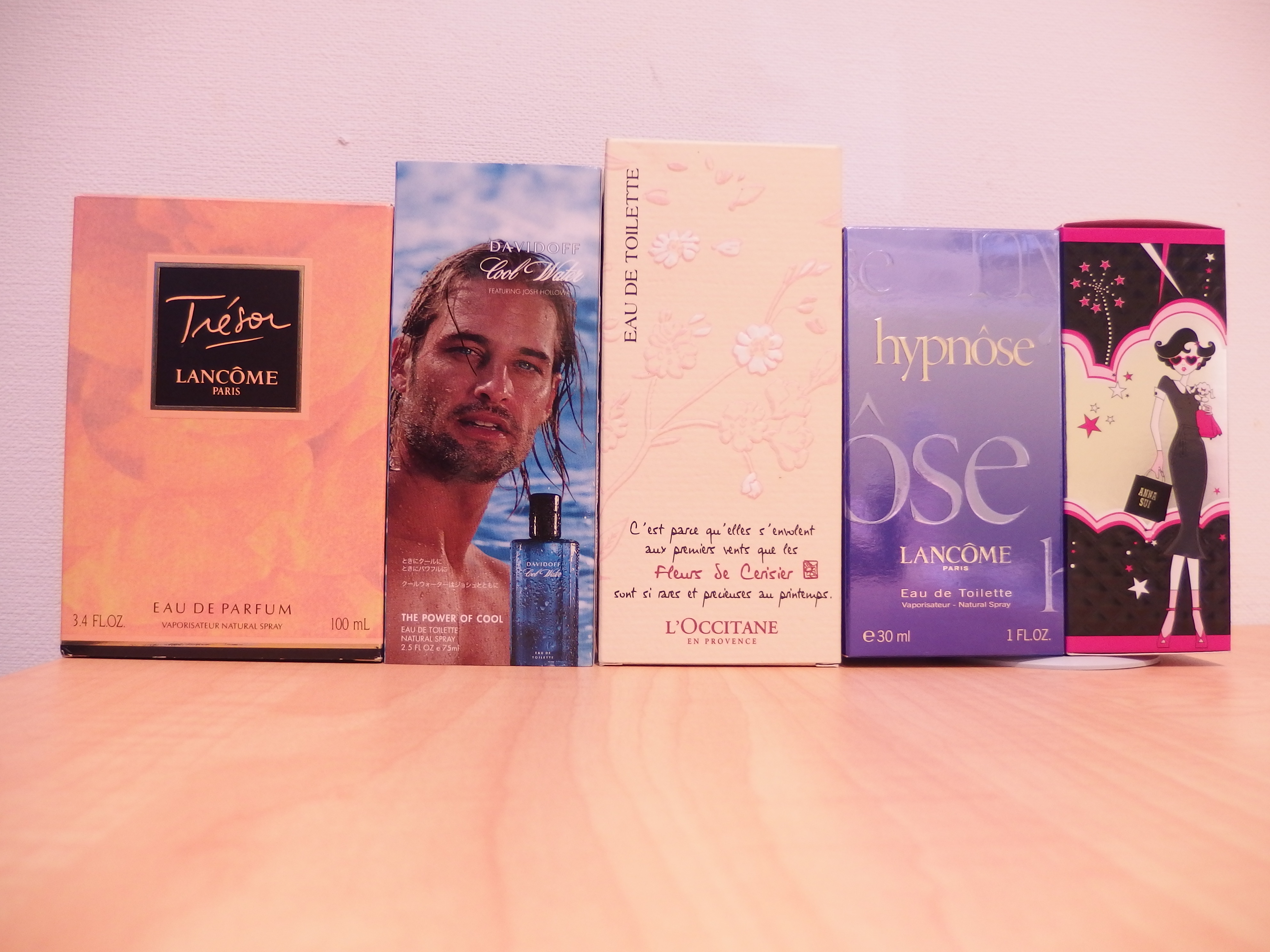 今回お買取りしたのはダビドフ クールウォーター、ランコム トレゾア、ロクシタン ガーデン、アナスイ ドーリーガール、ランコム イプノーズの5点。