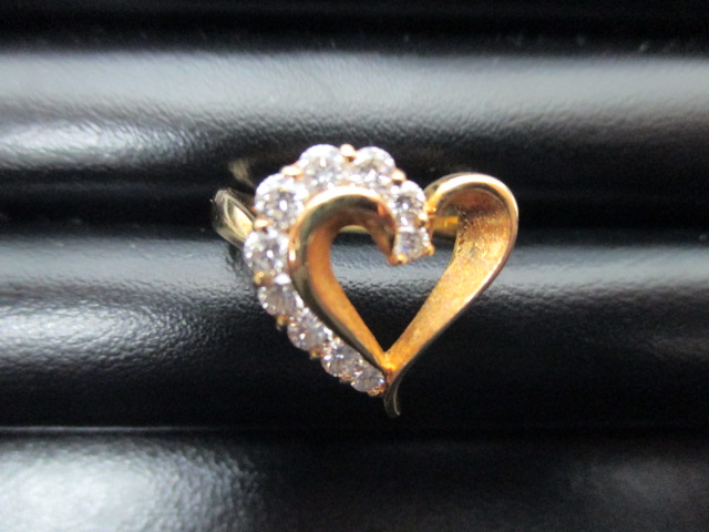 このダイヤのリングはハート形のデザインにダイヤが10個もちりばめられた