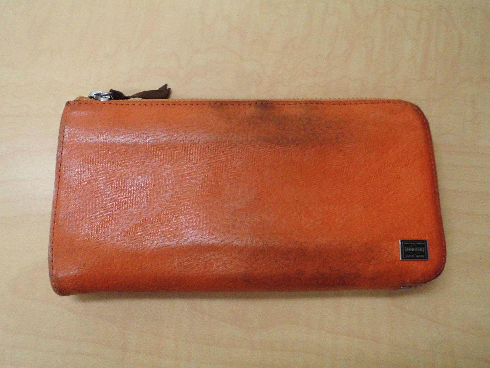 状態はあまり良くなかったのですが、オレンジ色のレザー長財布という