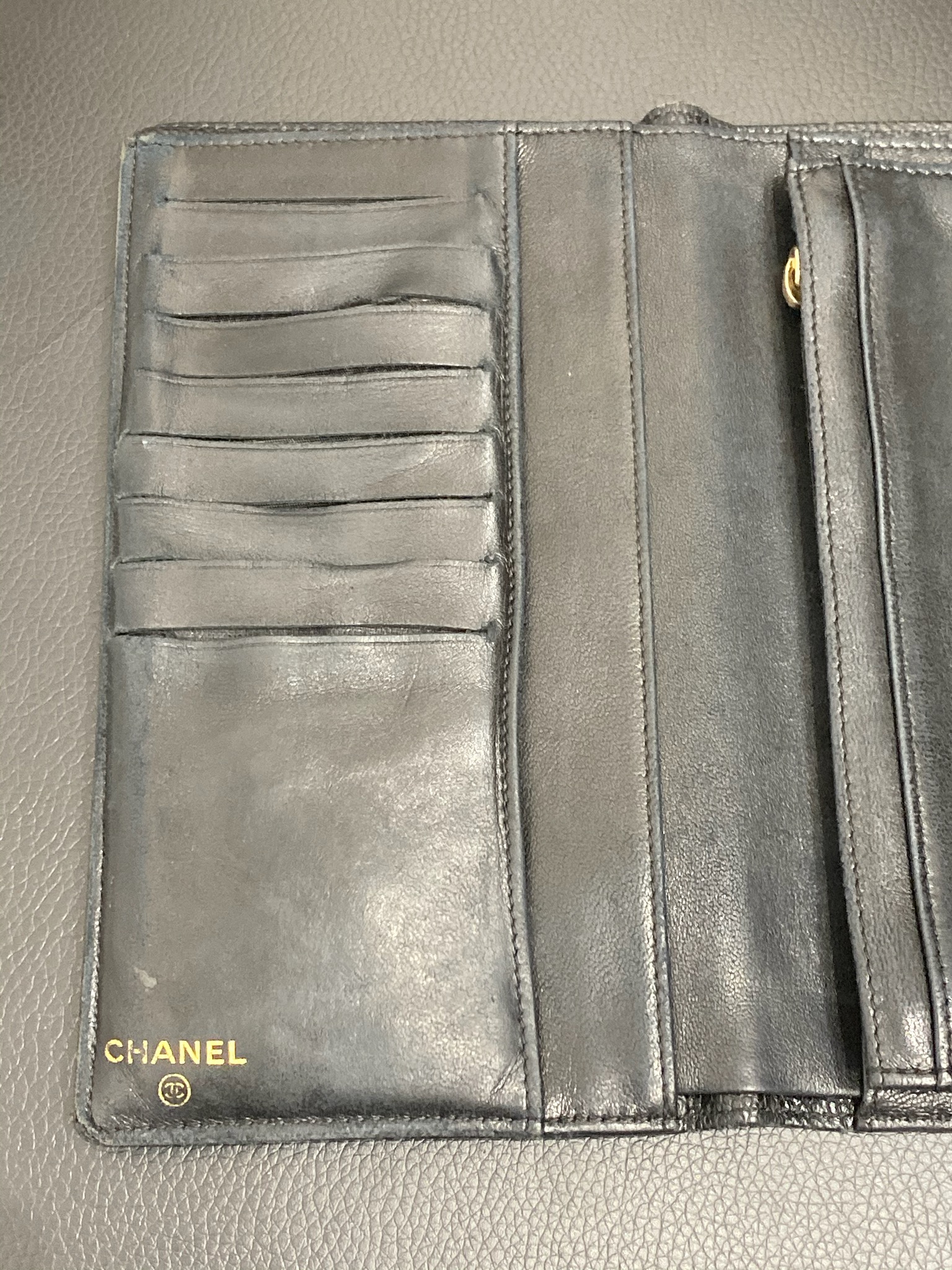 CHANEL キャビアスキンの長財布です。