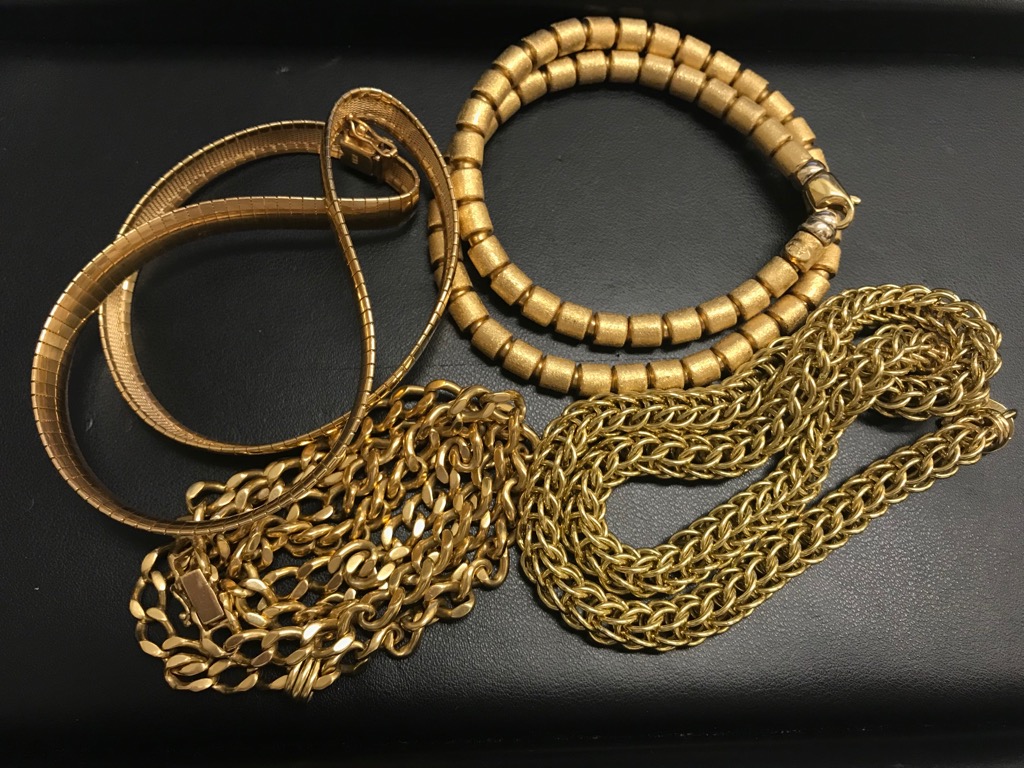 今回お買取したのは金のネックレスや金の指輪、金貨、金のイヤリング等々、
