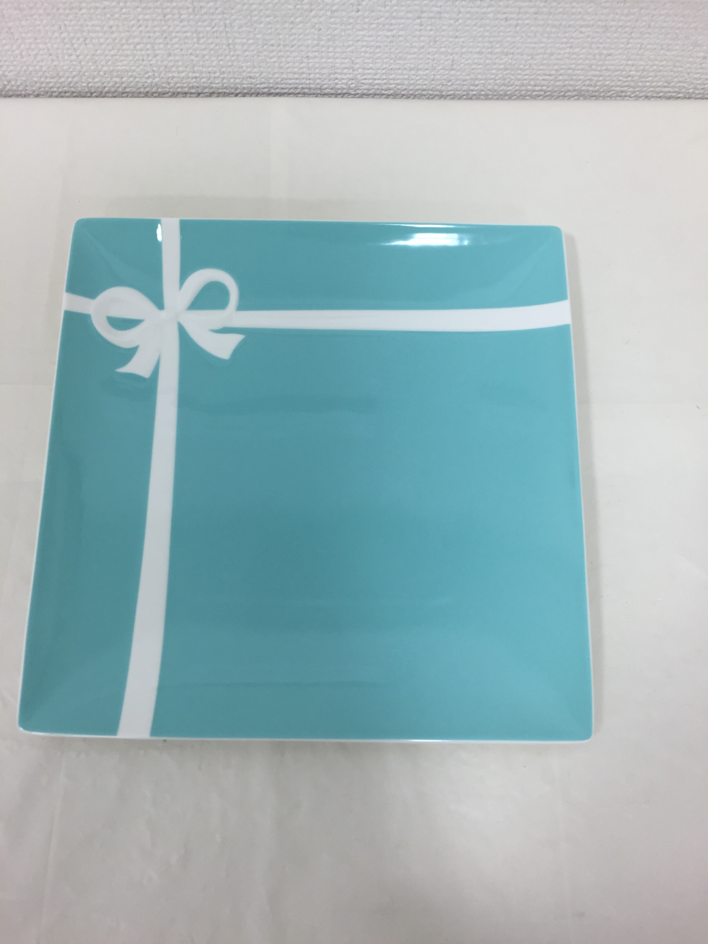 ティファニーには、プレートもあるんですね!ブルーとホワイトのシンプルなデザインにリボンがついててかわいいですよねー。