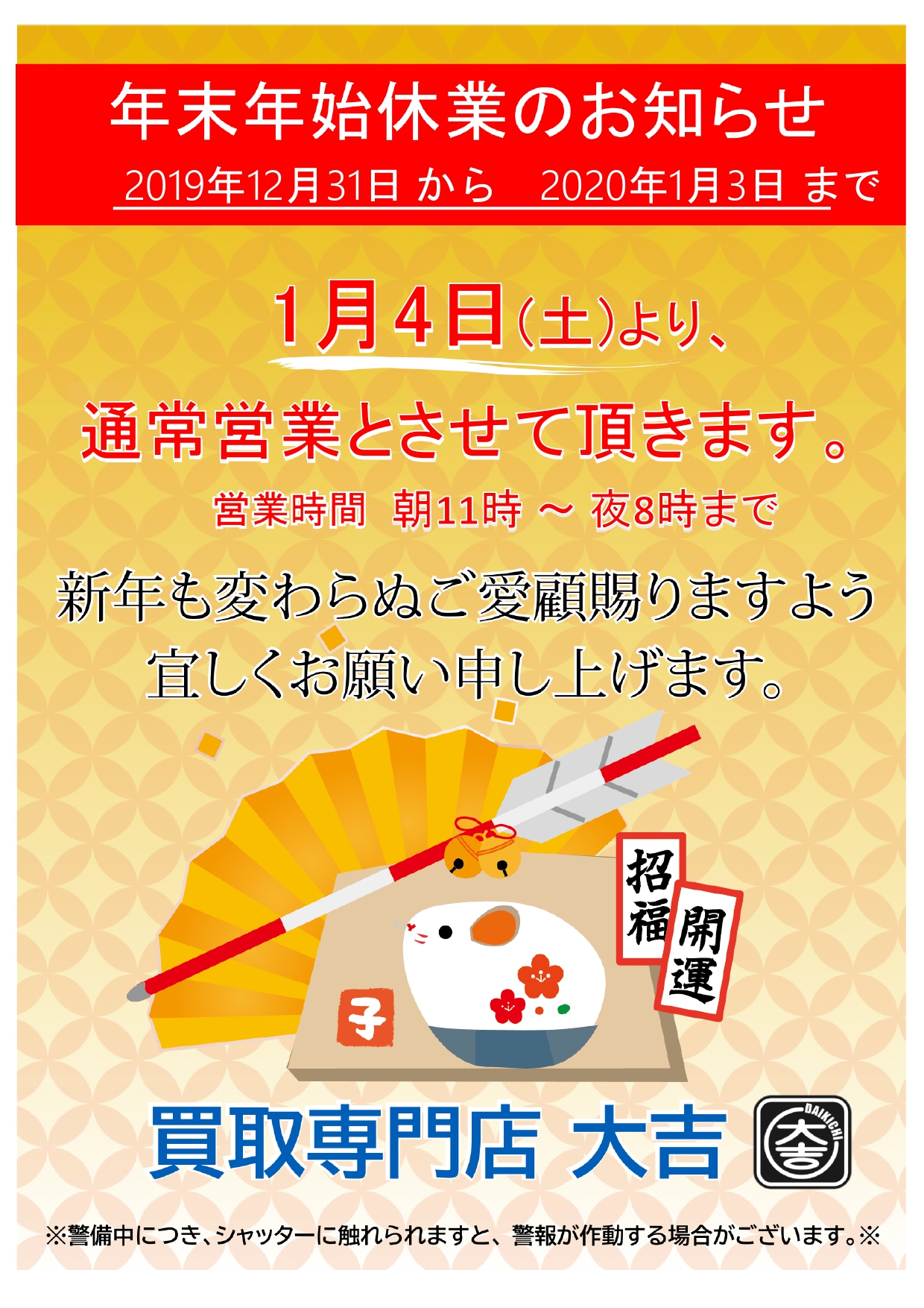 来年も買取専門店大吉新宿本店を宜しくお願い致します。