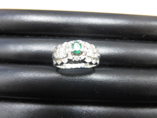 エメラルドの周りにあるメレダイヤが素敵です!