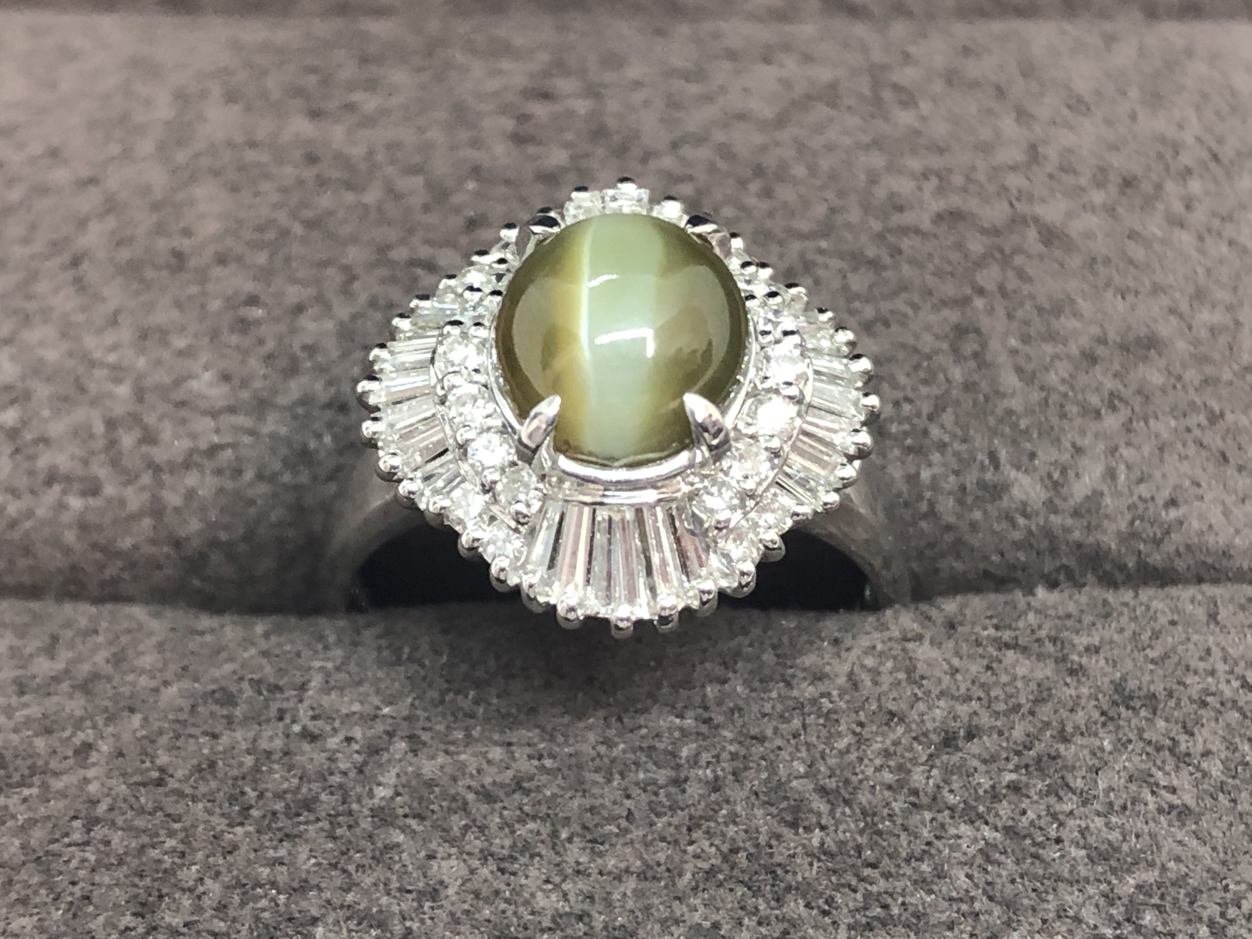 キャッツアイ3.06ct D0.66ct 色石ジュエリー 色がとても綺麗でしたので高価買取させていただきました。