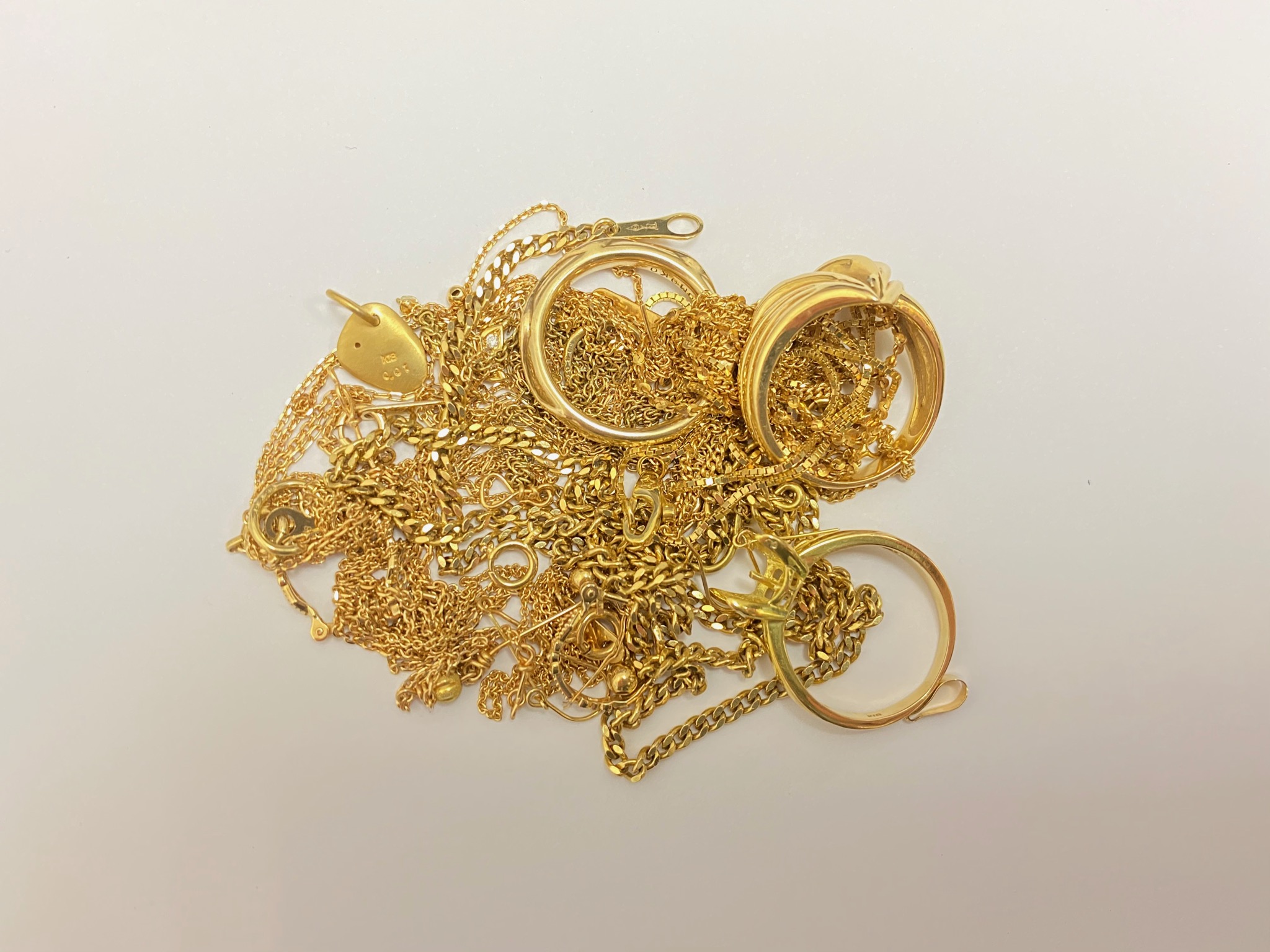 今回お買取したのは金の指輪や金のイヤリング、金のネックレス、金の時計、金のタイピン等々色々です。
