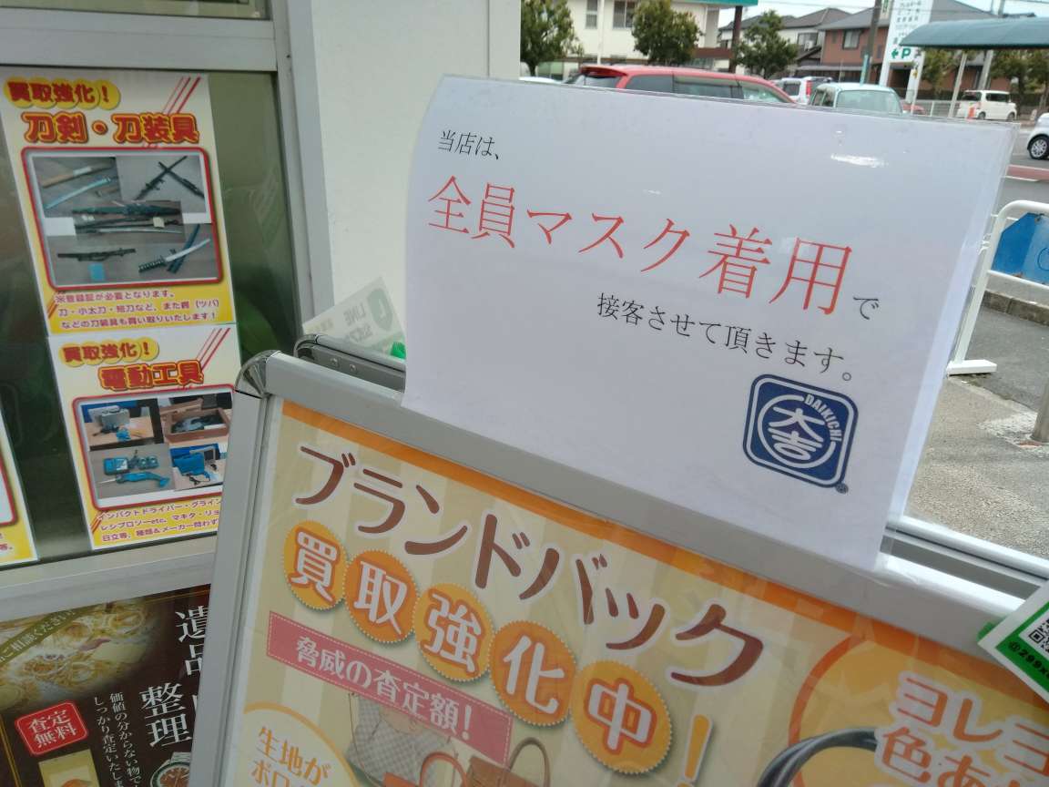 連日の新型コロナウイルスの報道を受け、買取専門店大吉 春日井バロー高蔵寺店では、全員マスクを着用させていただきます。