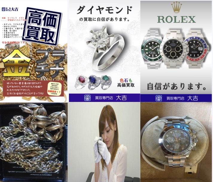 金・貴金属・切手・ブランド・古銭・カメラ・金券チケット・時計・プラチナ・ダイヤなどの高価買取ならまず大吉で無料査定。