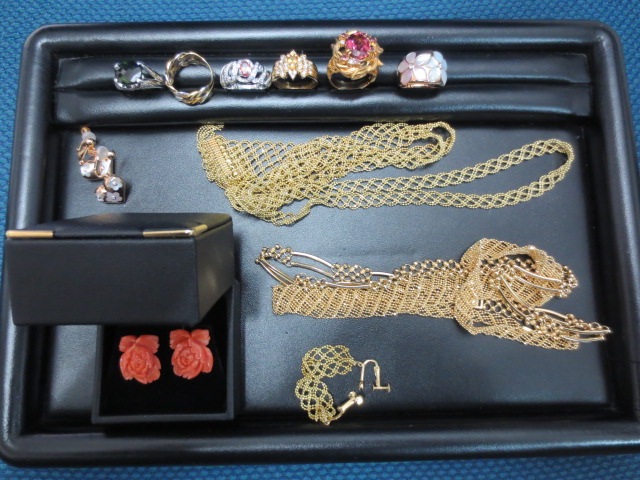 貴金属 金 プラチナ 珊瑚 リング イヤリング