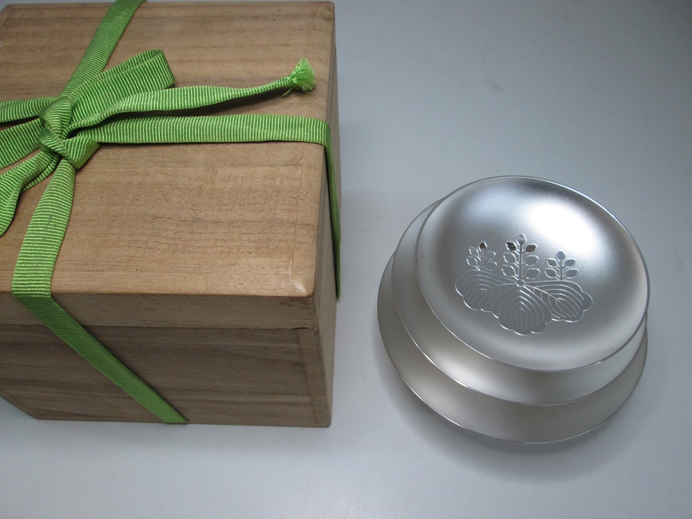画像の銀杯は桐の箱付の未使用品ですが、箱がなくても、黒ずんで