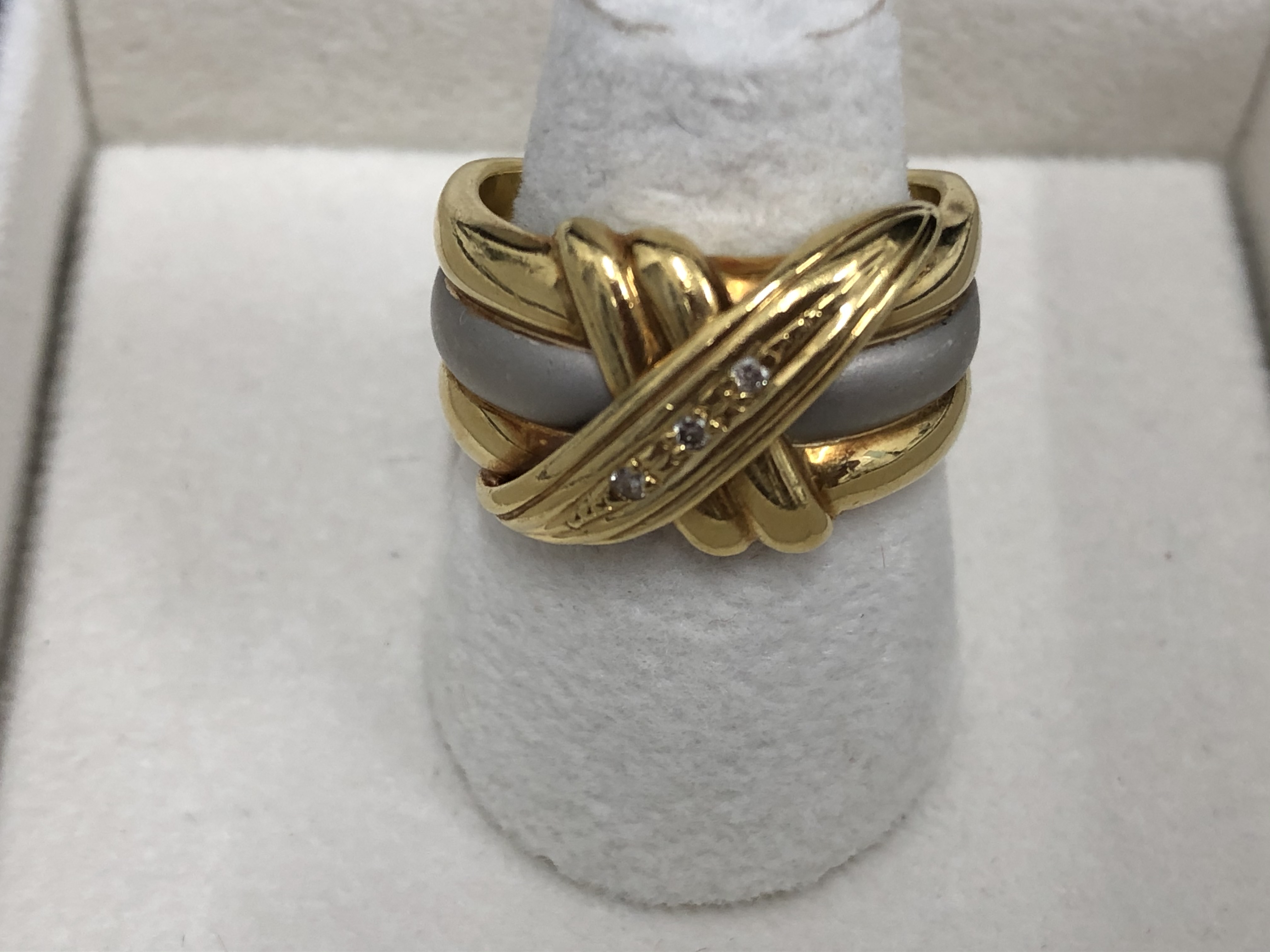 Pt/Kコンビリングをお買い取りいたしました。金はもちろんプラチナ、ダイヤモンド、ルビー、サファイア、エメラルド、色石もおまかせください。まったく使用していない、サイズが合わない、デザインが古い、石が取れている、片方しかない、チェーンが切れている、イニシャル入り、不要になった貴金属はありませんか?