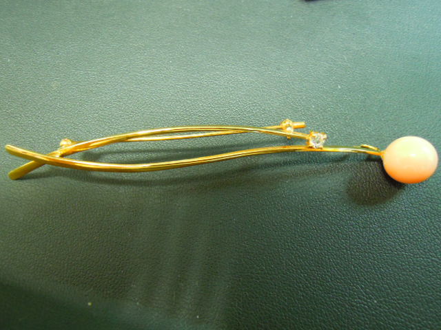 コーラルピンクの珊瑚が可愛らしい金製のブローチです。
