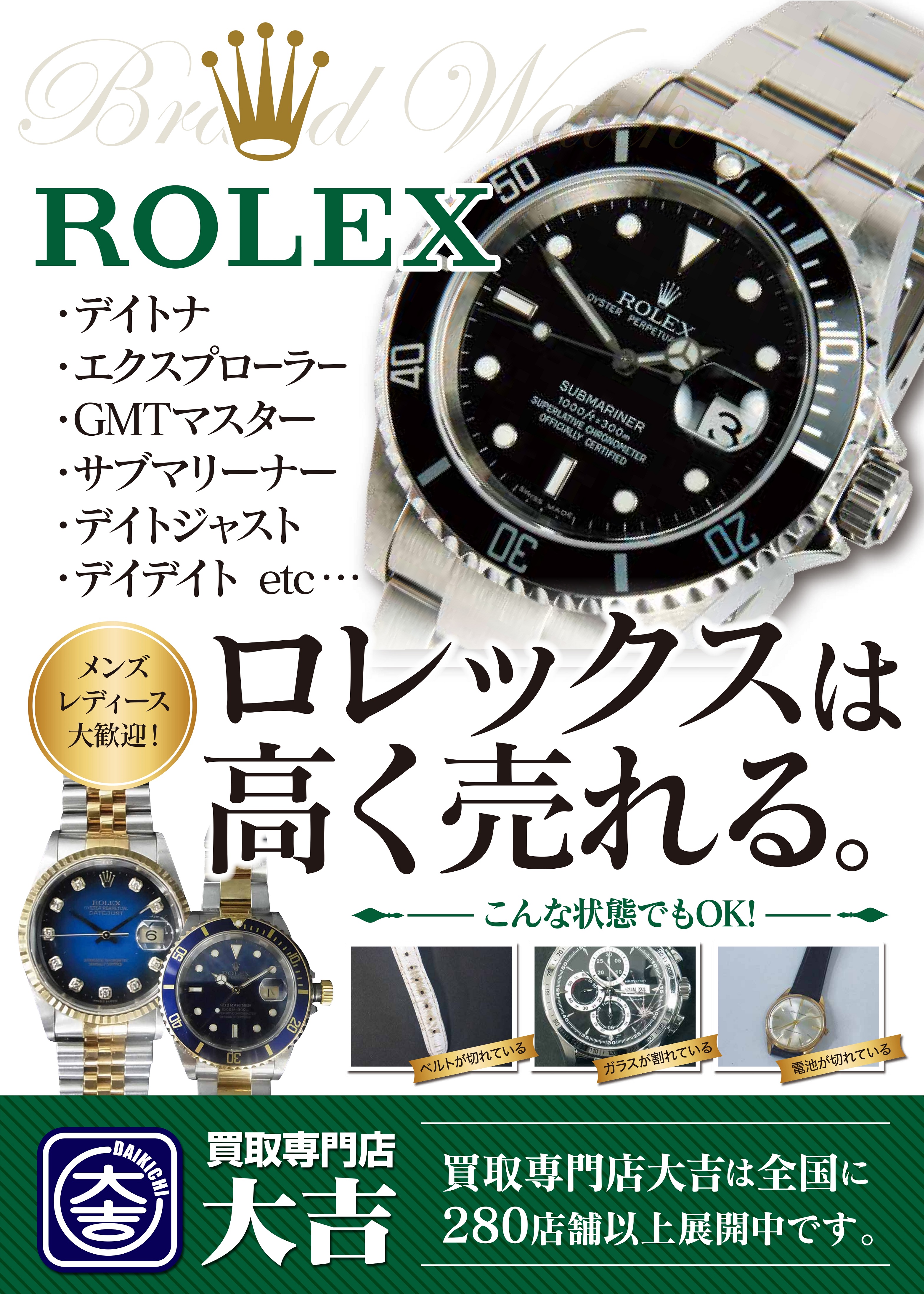 『買取専門店大吉 じゃんぼ食鮮館花園店』7月23日オープン!ロレックスお買取りのご案内♪ | じゃんぼ食鮮館花園店