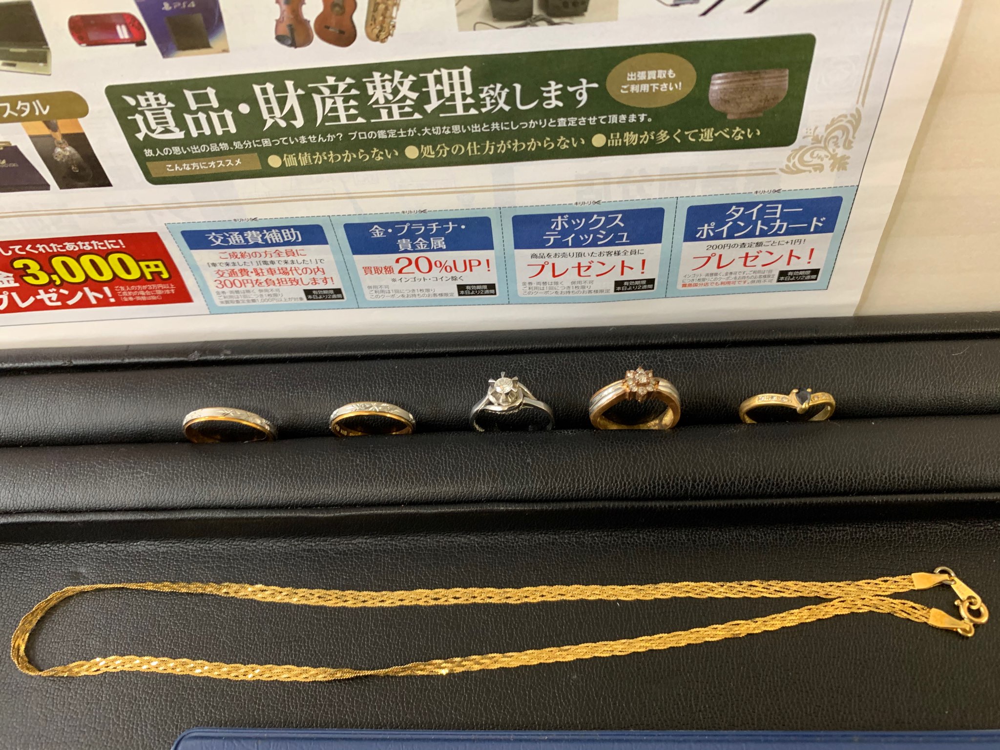 本日はリング一点・ネックレス一点の買取と