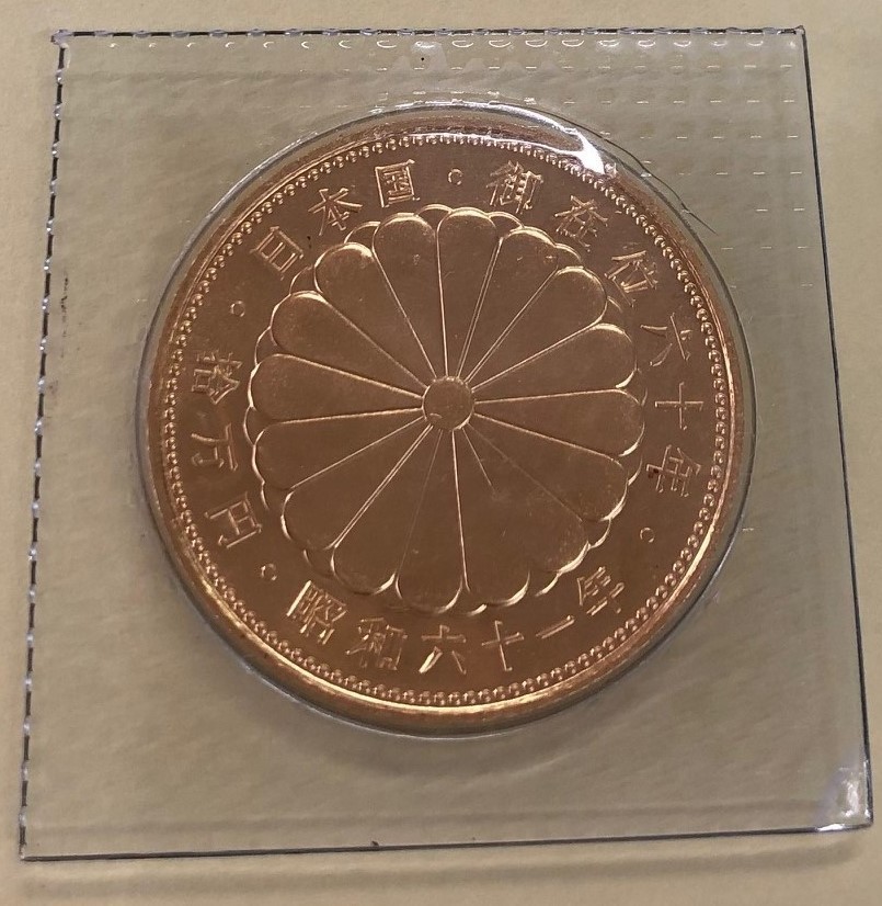 天皇陛下御在位60年記念10万円金貨です。