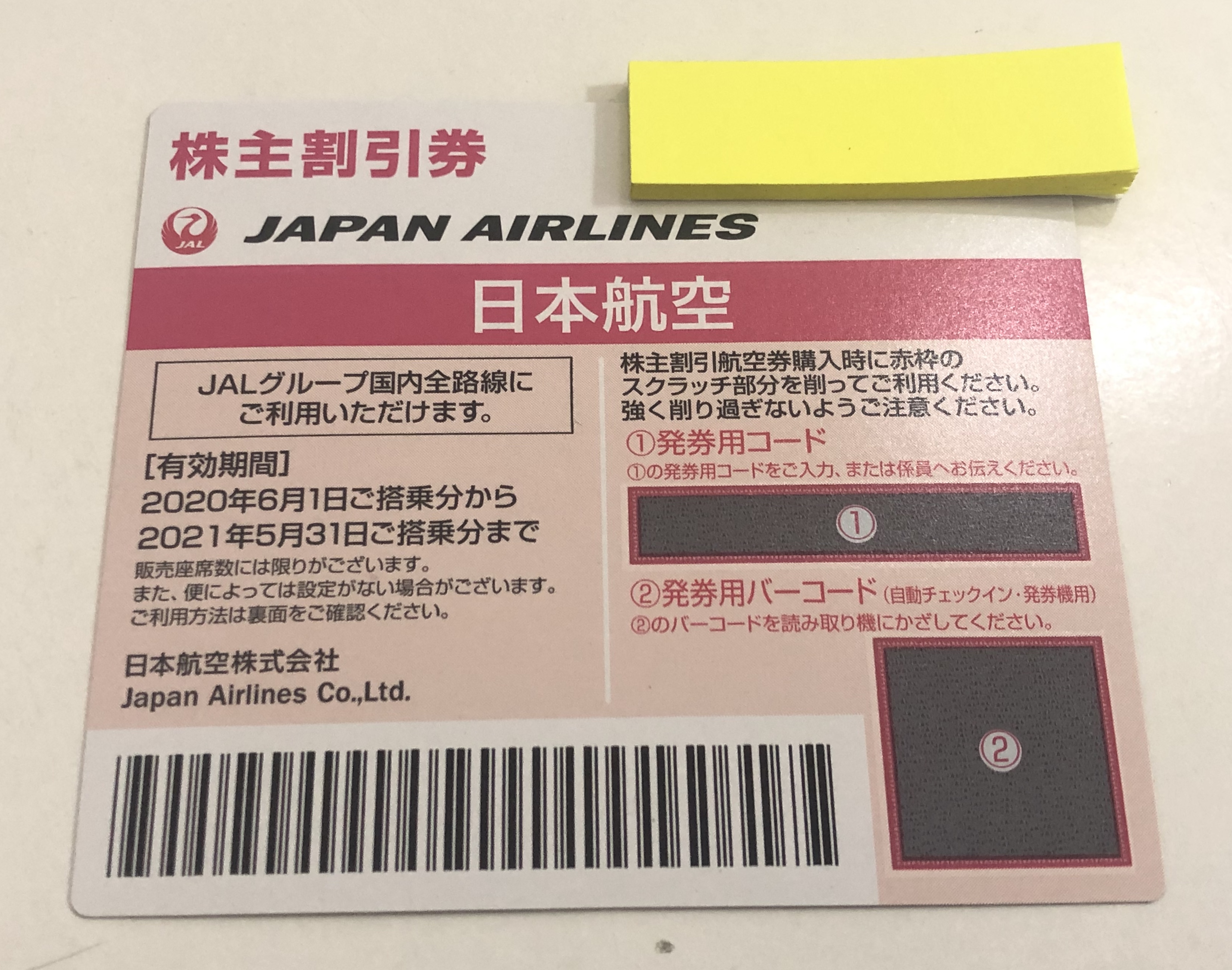 先日はJALの株主優待券をお買取しました!