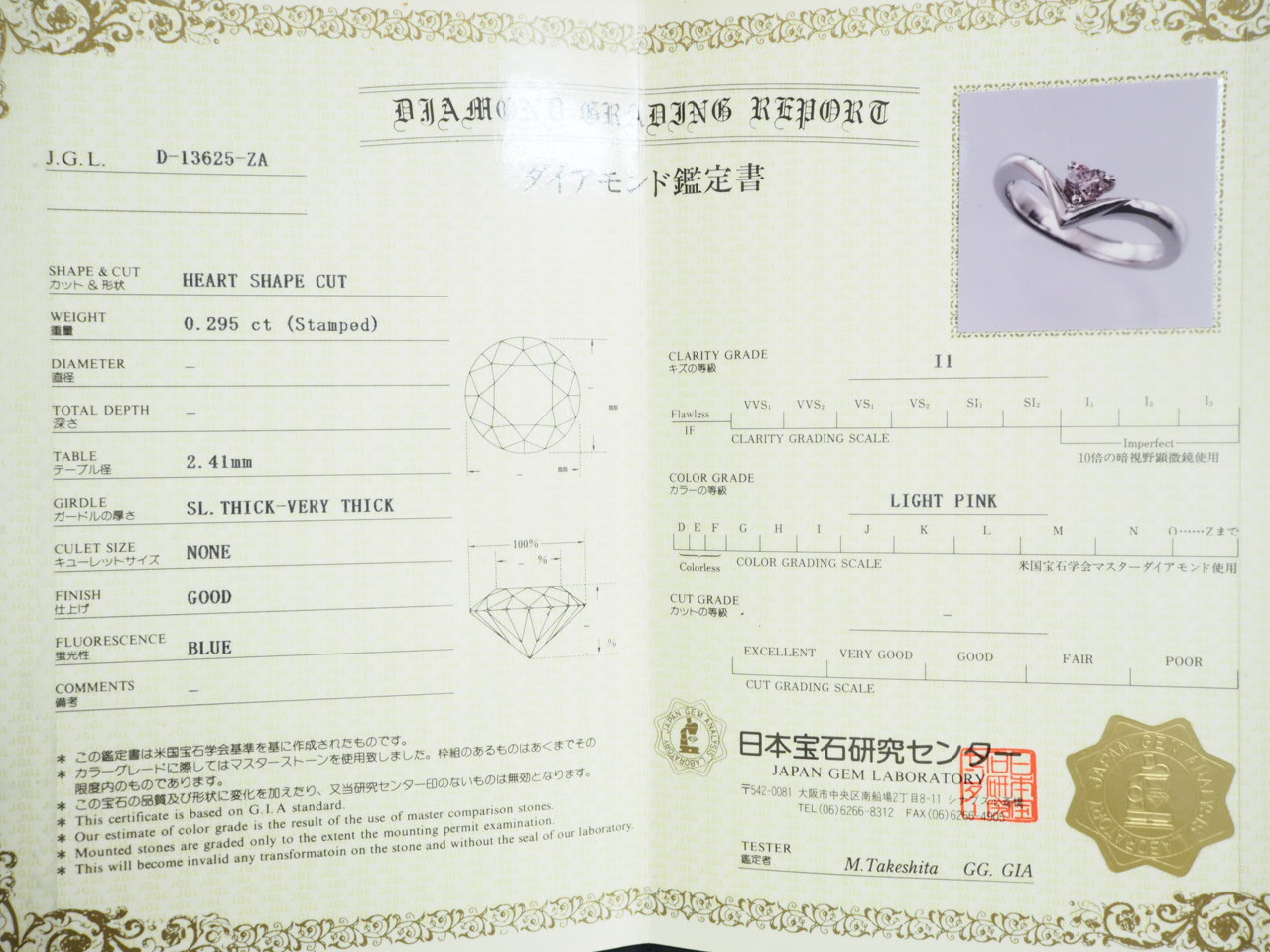 大吉高槻店:「◇宝石◇ピンクダイヤ ハートシェイプカットリング Pt900 D0.295」買い取りました。 | 高槻店