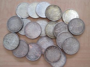写真の東京オリンピック記念1000円銀貨は素材が銀92.5%であり