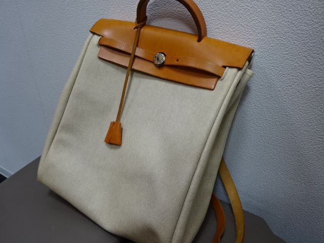 エルメス エールバック(エールバッグアド リュック )です、写真では分かりにくいですが、ややシミも多く、使用感も強い状況ではありますが、ご紹介という事もあり、高価査定し、喜んでお売り頂けた商品です、紹介というのは本当にありがたく、今回のように紹介して頂いたお客様が、またご紹介を頂き、写真のエルメスに繋がったんですよね!