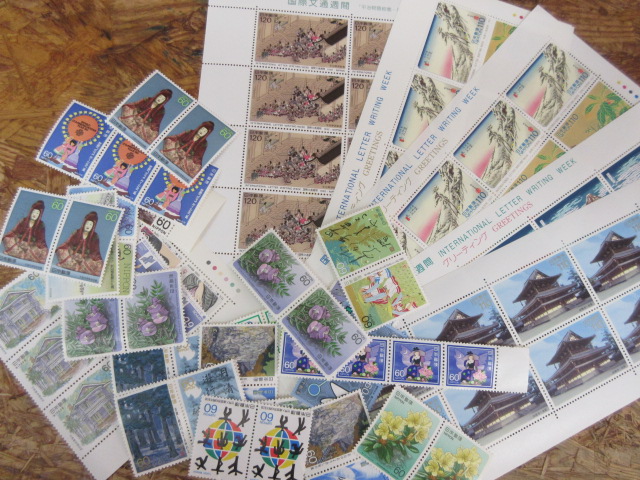 日本切手、記念切手、普通切手、シート、バラ、各種です。