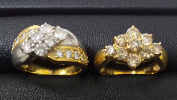 K18/Pt900 サファイヤリング、ダイヤ付リングをお持ちいただきました。