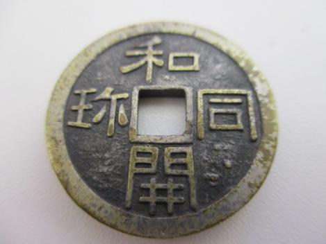 時計回りに和同開珎と描かれていています。