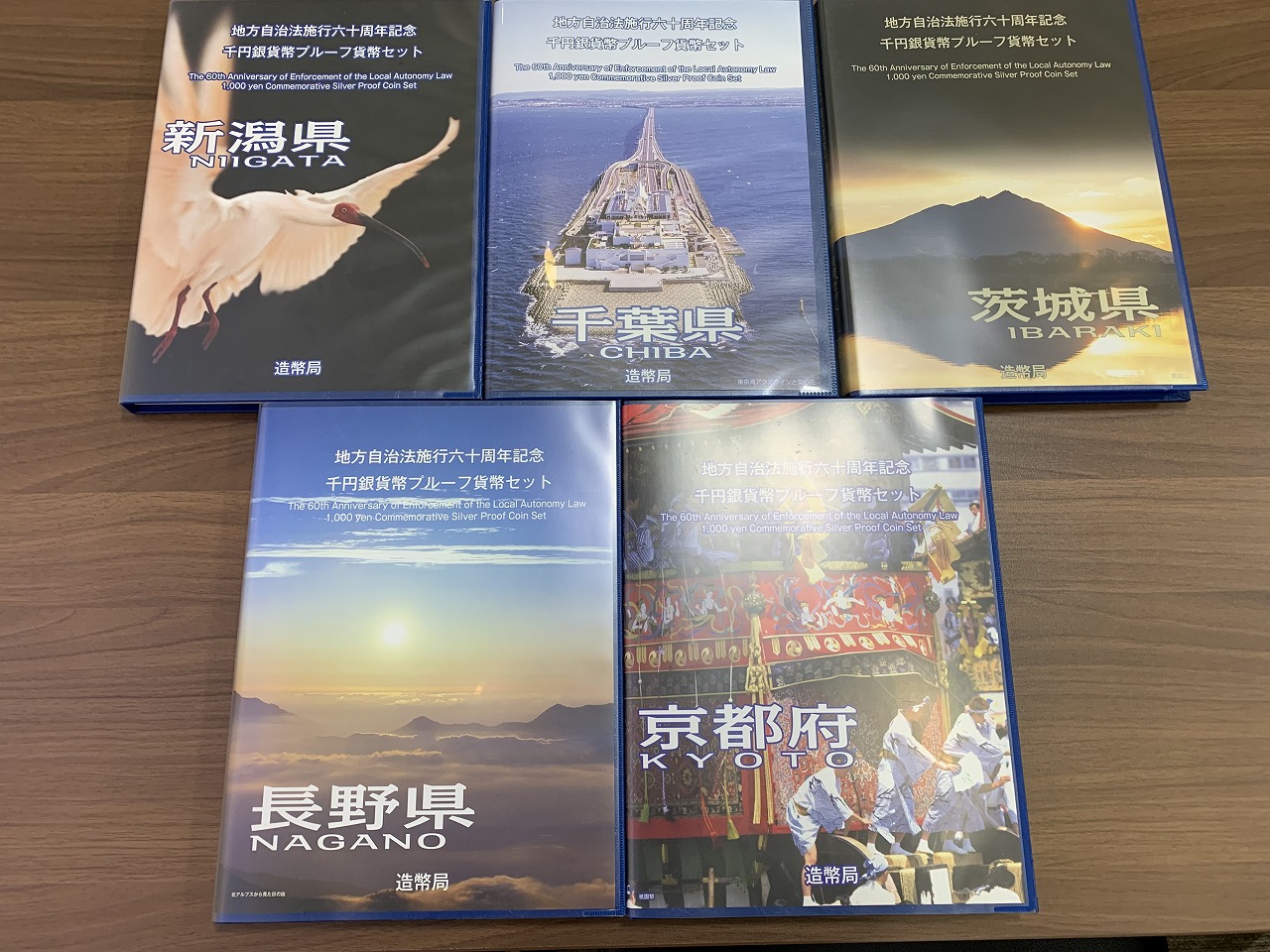 本日は地方自治法施行六十周年記念の千円銀貨になります。写真にあるのは一部都道府県の