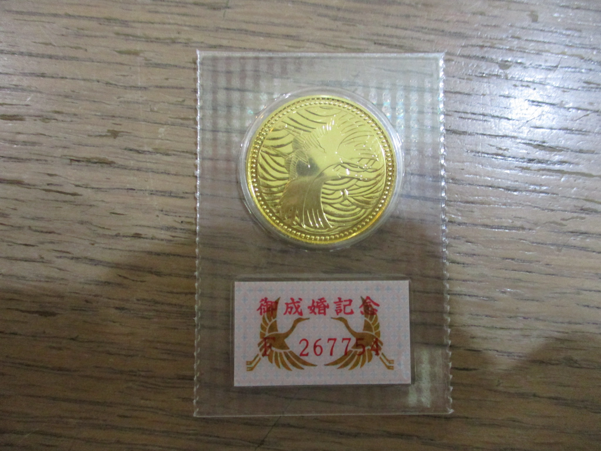 御成婚5万円金貨をお持ちいただきました。