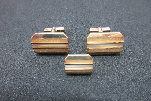 金製(18金)のカフスとタイピンです。色が”金”のカフスは多いのですが中には素材が金の物もあります。