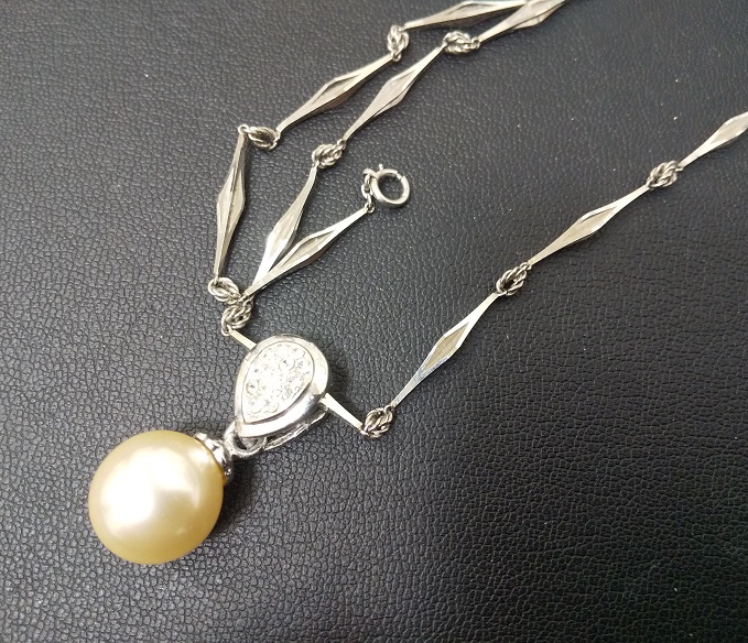Pt900 プラチナ ダイヤ付きパール・ネックレスをお持ちいただきました。