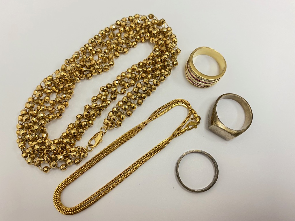 写真の様に金のブレスをはじめ金のネックレス、金のリング等、金ならどんな状態、