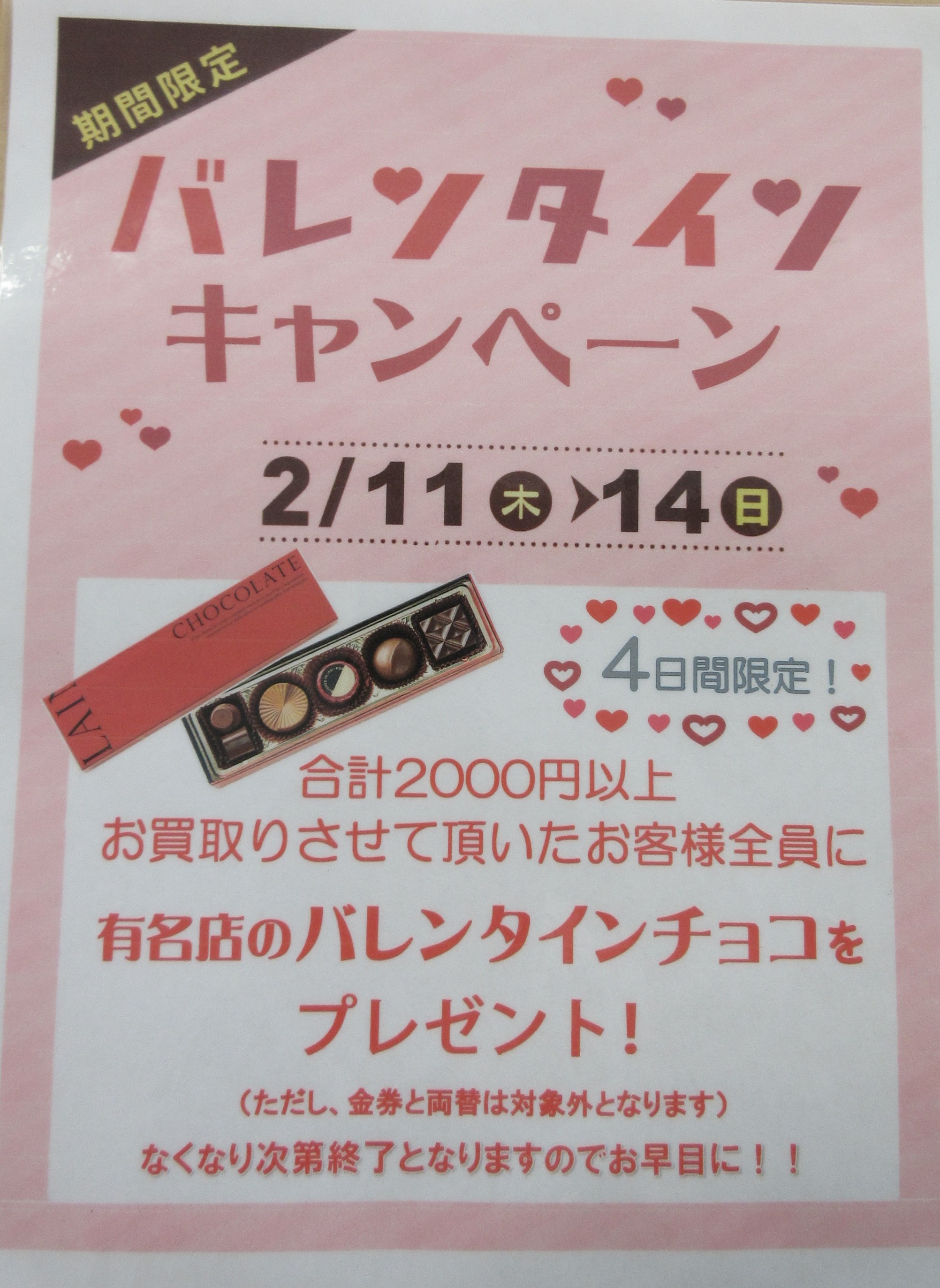 大吉千里丘店 明日2月11日~2月14バレンタインキャンペーン開催します!! | 千里丘店