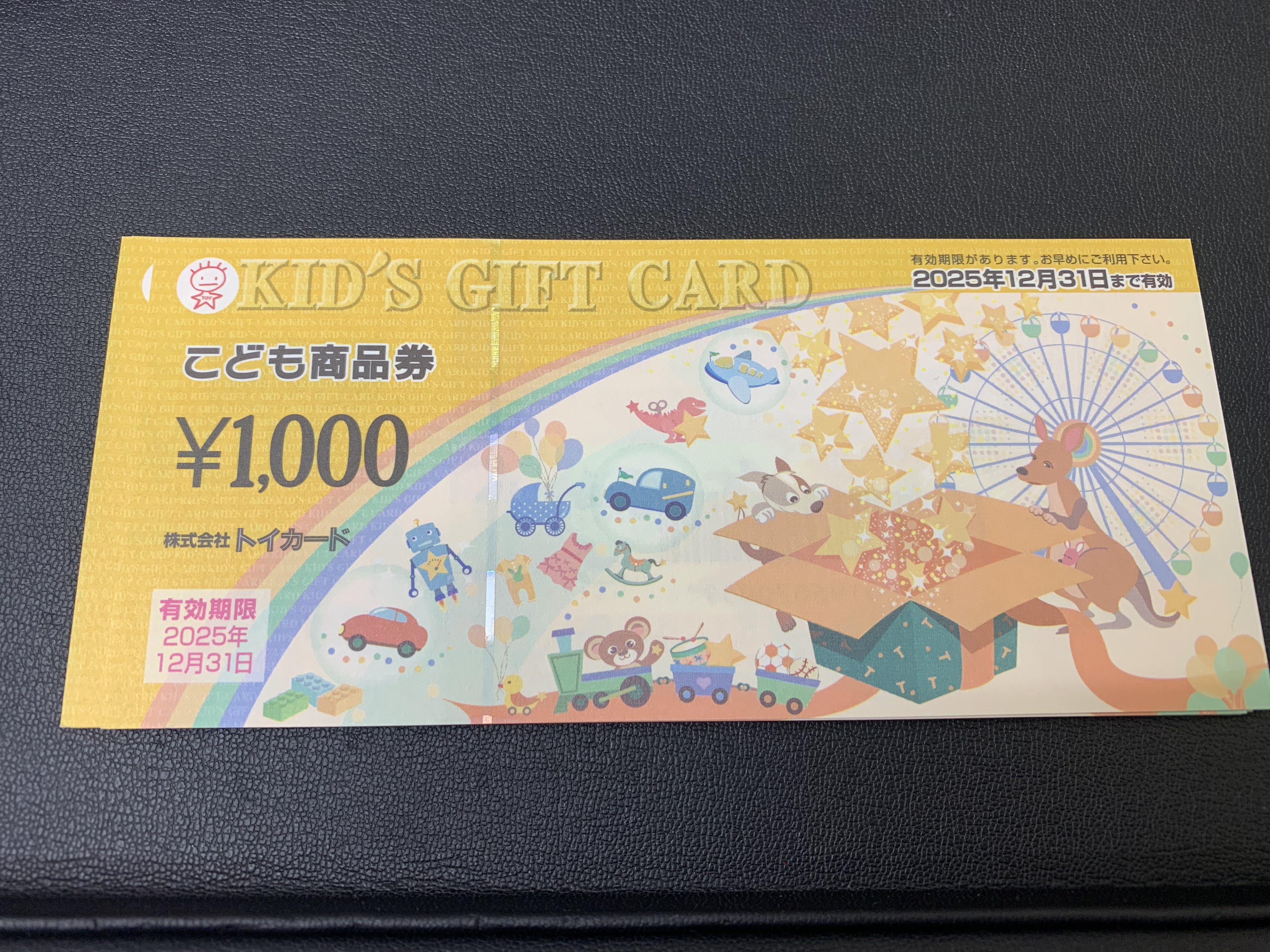 こども商品券は、子供服やおもちゃを対象に使用することができる金券です。
