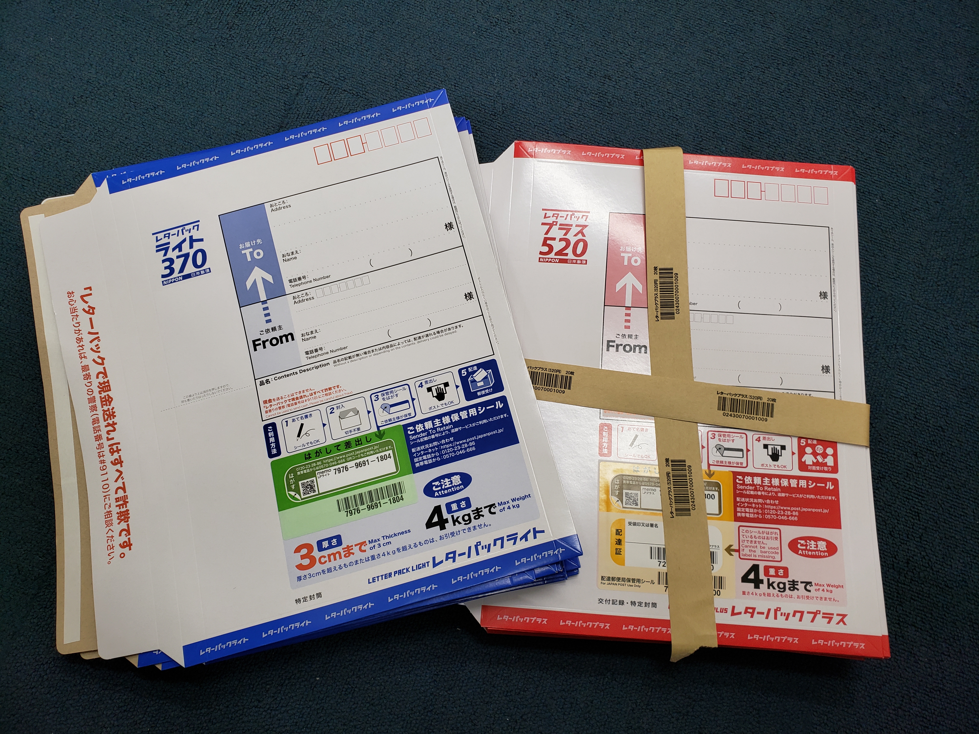 普通切手でも良いのですが、端数が余り安く、レターパックなら370円未満しか余りません!